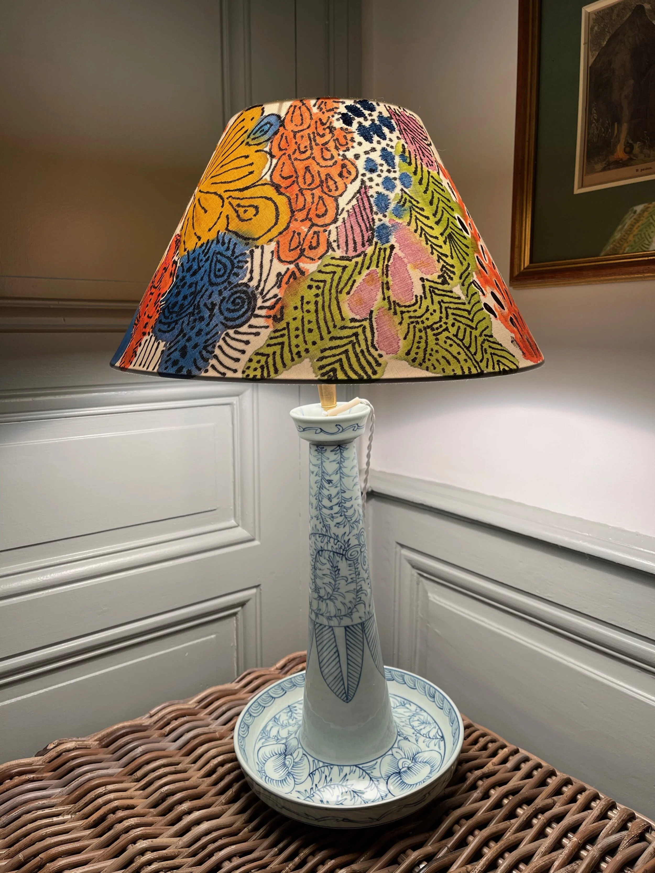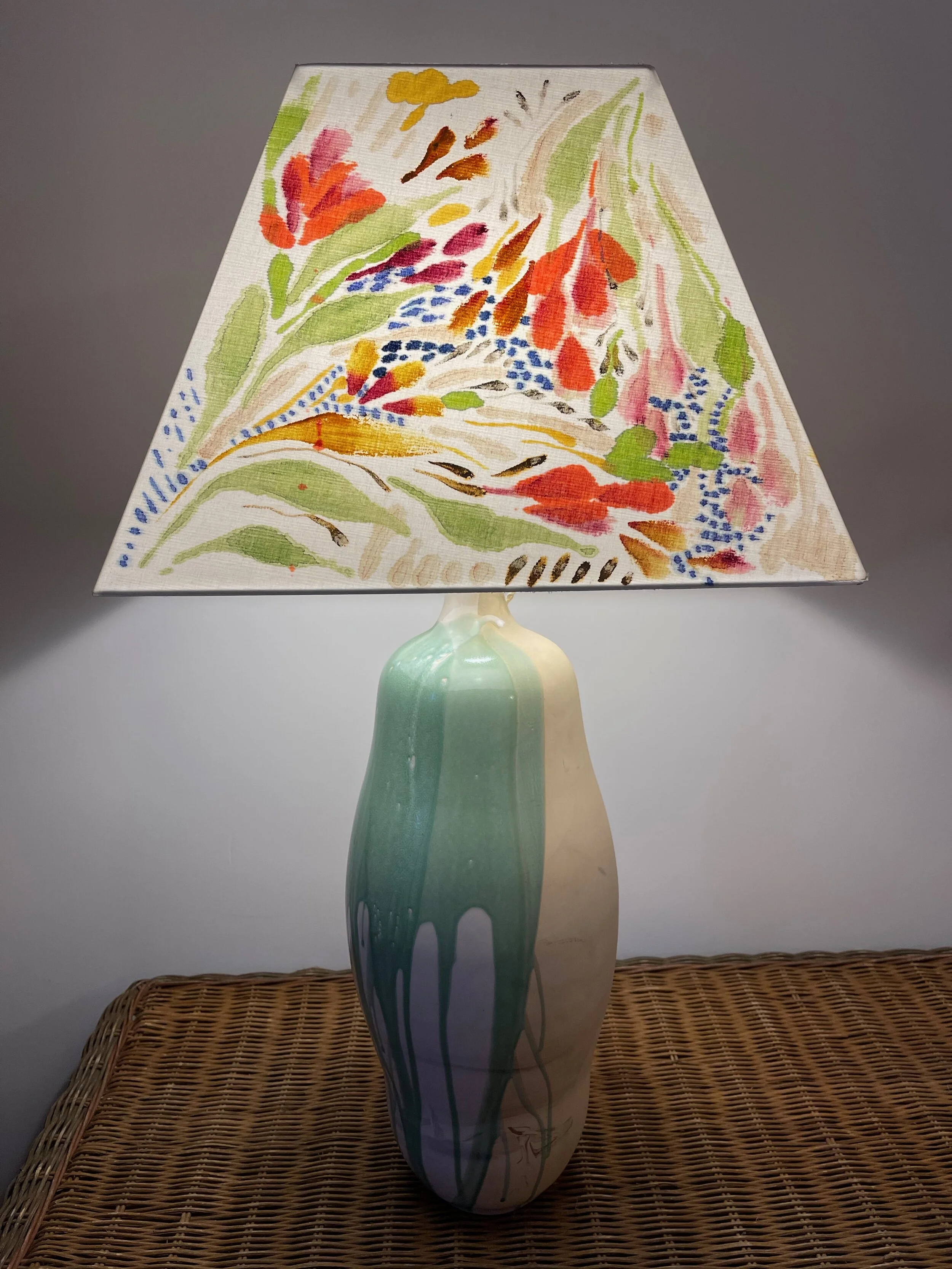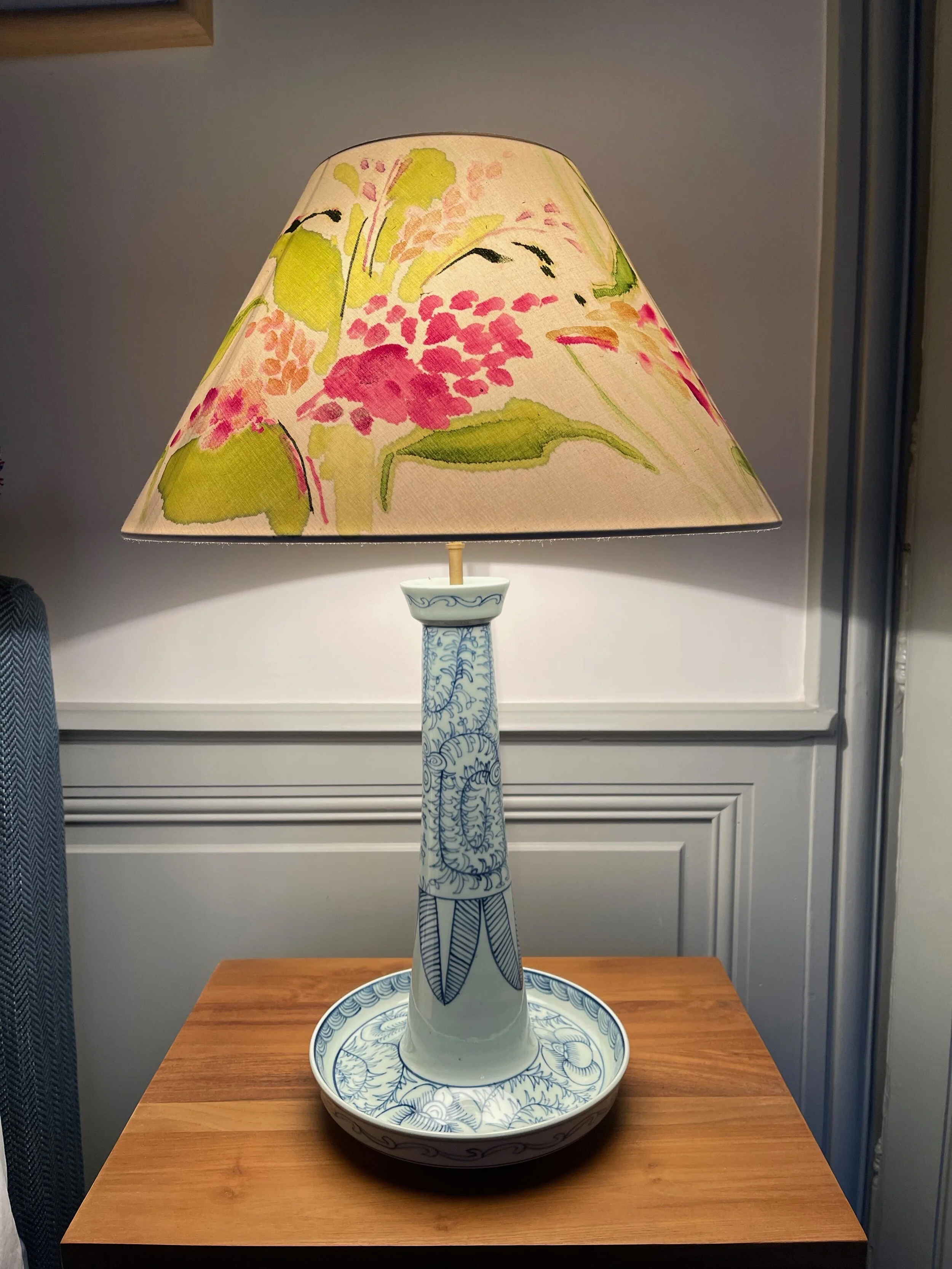 When my interior design projects allow for lamps with custom designs, I collaborate with my sister who specializes in hand-painted lampshades.